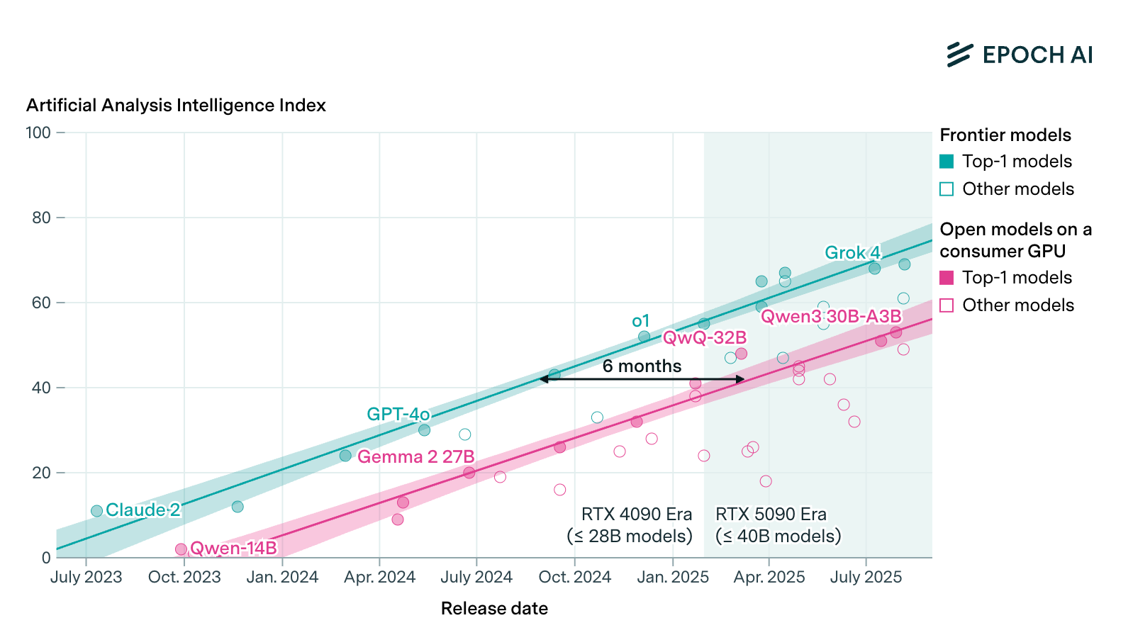 "Using a single top-of-the-line gaming GPU like NVIDIA’s RTX 5090 (under $2500), anyone can locally run models matching the absolute frontier of LLM performance from just 6 to 12 months ago."